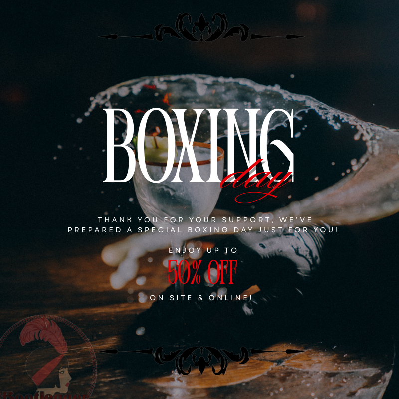 Boxing Day at Bootlegger — In-Bar & Online! Get ready… To thank you for your support, we’ve prepared a special Boxing Day just for you! 📅 December 27 🍸 Up to 50% off on select items | 5 PM – 9 PM 💻 20% off on our select items on our online store 👉 Promo code will be shared in our Stories one day before 🎁
